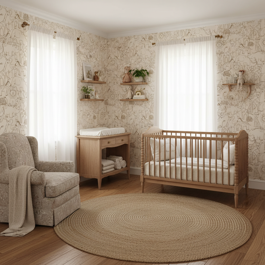 Neutral Forest Baby Room Wallpaper