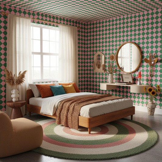Pink & Green Diamond Retro Wallpaper
