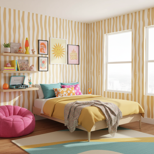 Retro Stripe Colourful Vintage Wallpaper