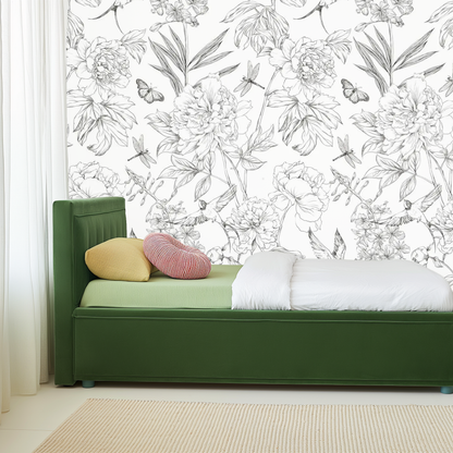 Embrace the natural beauty of the Avian Monochrome Elegance Mural. The graceful birds and delicate butterflies bring a touch of sophistication to any space. Create a peaceful oasis with this stunning mural, reminiscent of a beautiful painting.