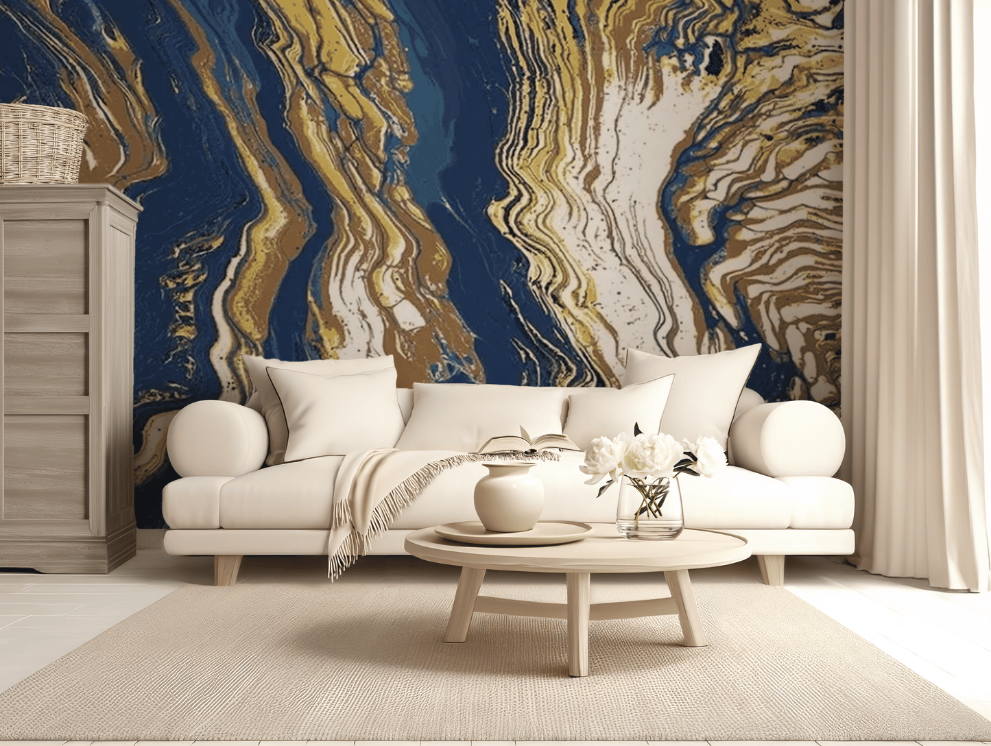 Transform your room into a work of art with our Blue and Gold Abstract Lines Mural! The dynamic design of bold blue and shimmering gold lines will add a touch of elegance and energy to any space. Make a statement and elevate your décor with this captivating mural