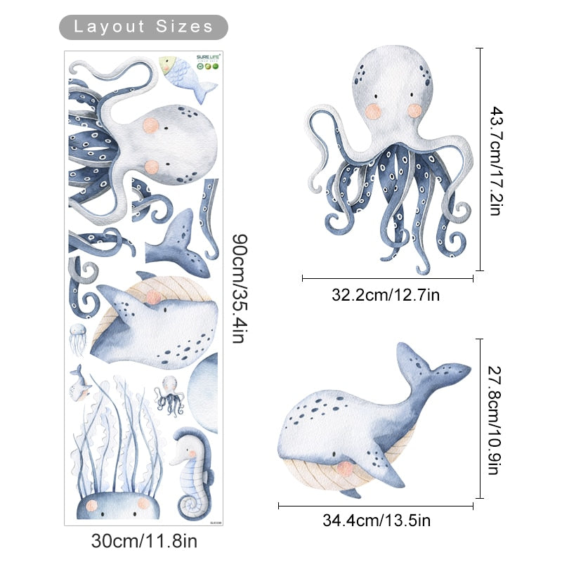 Bring the beauty of the ocean into any nursery with these delightful cartoon ocean animal wall decals! Perfect for any gender, these decals feature a variety of colorful sea creatures, offering a unique way to decorate and create an immersive, fun-filled atmosphere.