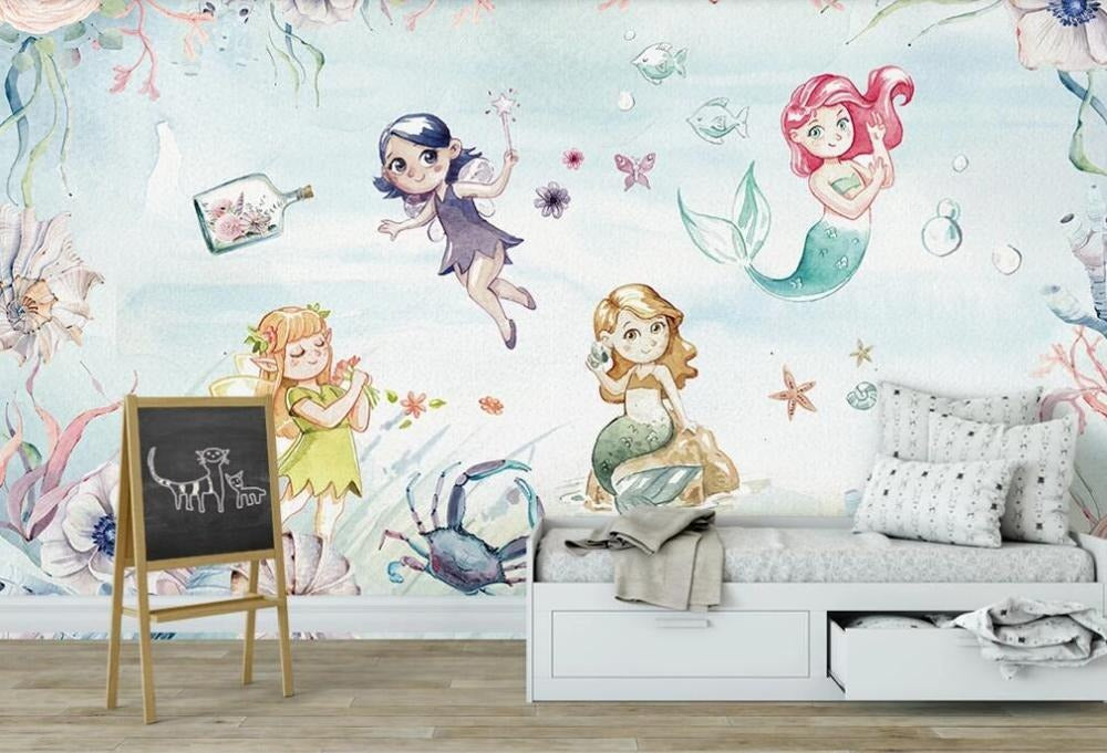 This Girls Mermaid Seaworld Mural  is the perfect way to create a dreamy underwater environment for your little one. The wallpaper features colourful and cute designs of fish, flowers, and butterflies. It will transform any room into a whimsical space that is perfect for playing.
