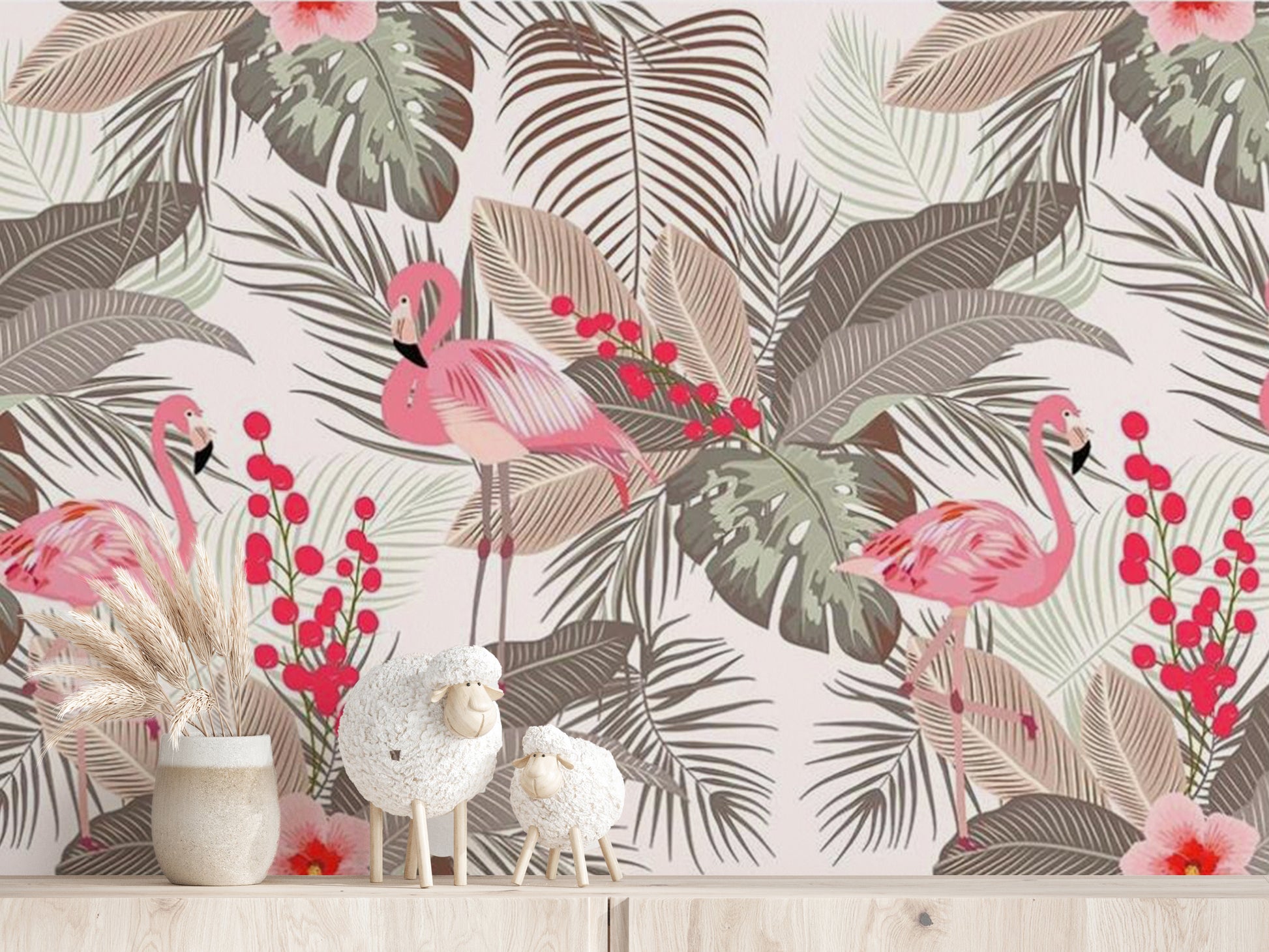 This bedroom mural is the perfect way to bring a bit of bliss and tranquillity into your bedroom. This mural features bright and colourful flamingos, in a beautiful garden setting with lush greenery. This mural is an outstanding addition to any bedroom, especially for girls! With its warm and embracing colour.