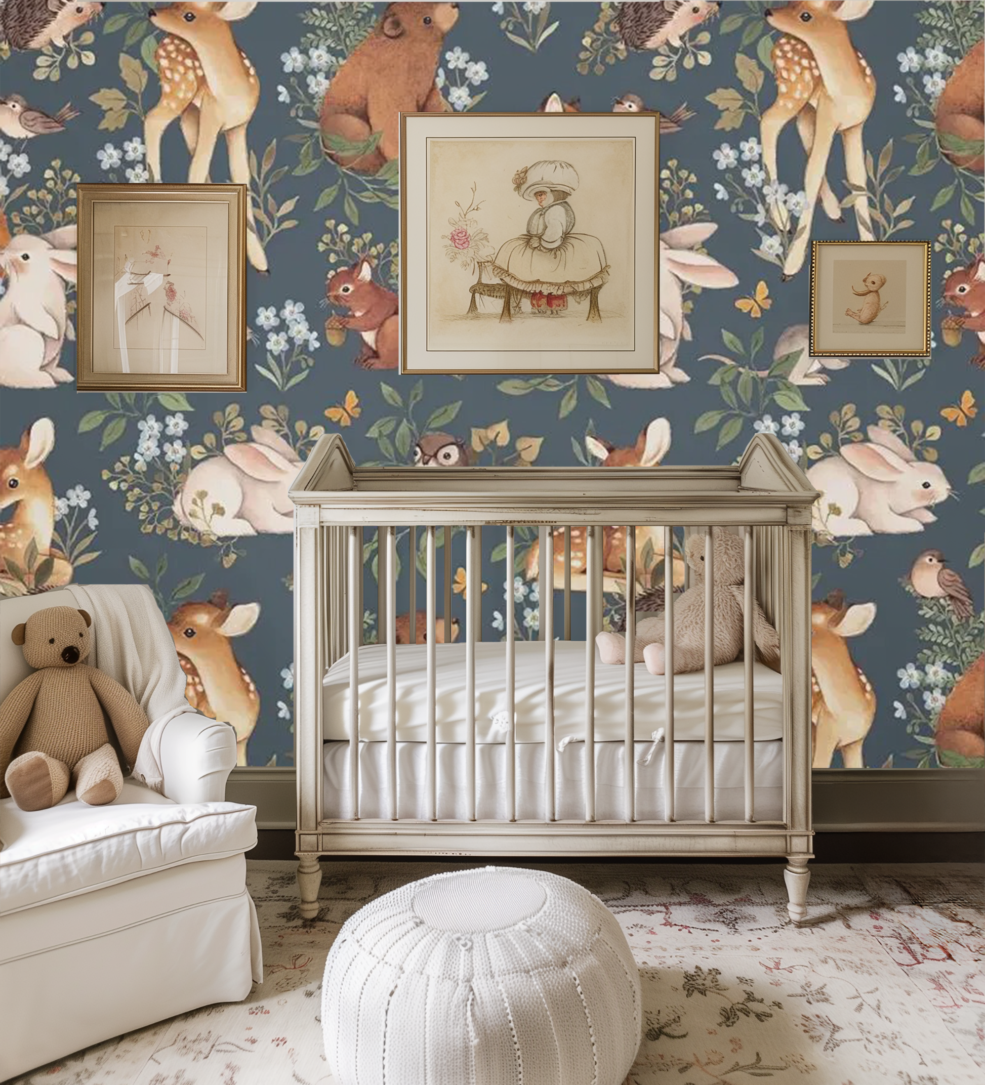 Transform your space into a serene paradise with the Green Forest Grove Animal Mural. Featuring a lush green forest with majestic animals, this mural adds a touch of natural beauty to any room.