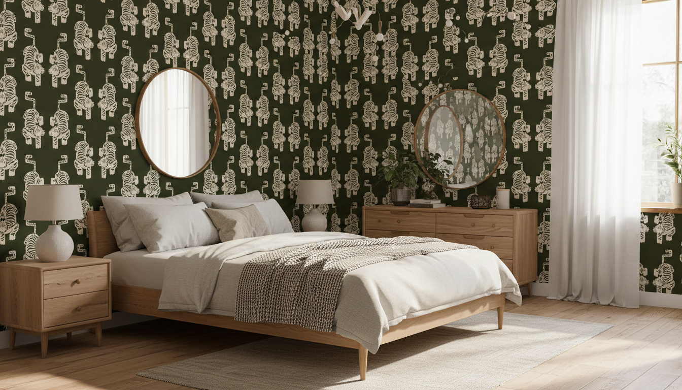 Unleash your wild side with this stunning olive green tiger wallpaper that brings the jungle straight into your home. Featuring a bold safari inspired print in sophisticated earthy tones, it's the perfect statement maker for living rooms, bedrooms, and spaces craving adventure. The striking tiger design adds drama and intrigue whilst the muted olive palette keeps things refined and on-trend. Whether you're a nature lover, animal enthusiast, or simply after a wallpaper with serious style credentials, this modern jungle aesthetic delivers impact without the roar. Create a space that's utterly untamed and undeniably fabulous.