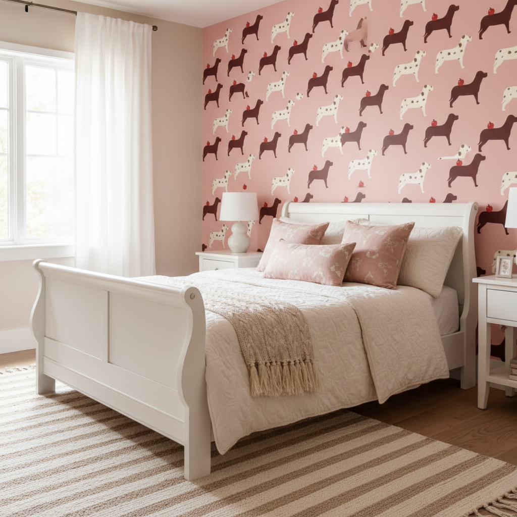 Bring furry fun to your walls with this delightful pink dog wallpaper. Featuring adorable puppy prints in cheerful pink tones, it's perfect for creating a joyful, imaginative space that celebrates what kids love. Whether you're decorating a nursery, bedroom, or playroom, this playful pattern adds personality and warmth whilst keeping the room feeling light and inviting. A tail wagging choice for animal loving little ones!