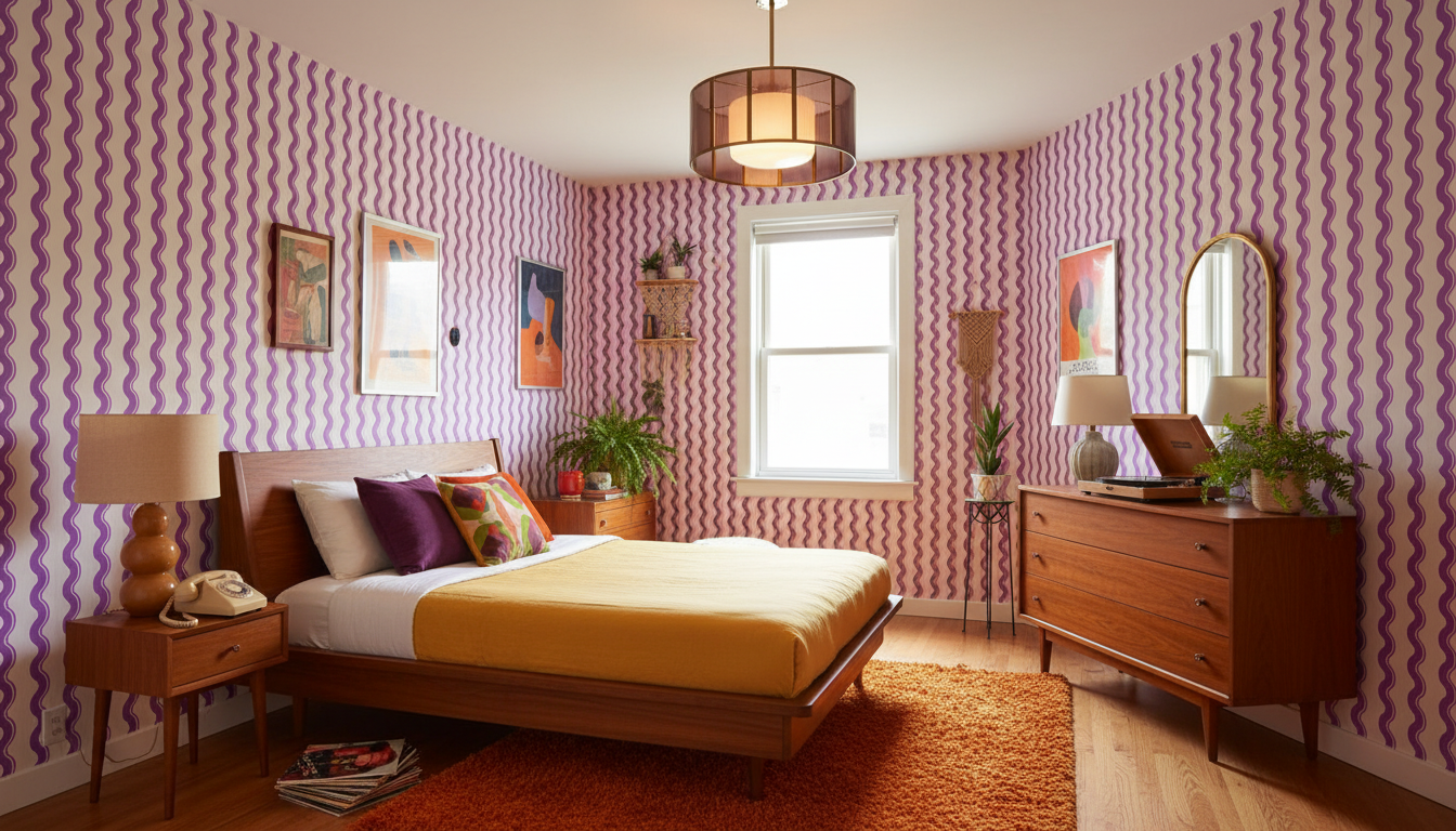Get groovy with this far-out purple wallpaper that's giving major retro-cool vibes! Packed with funky, flowing patterns that dance across your walls, this design is perfect for anyone ready to add some serious personality to their space. Whether you're channelling vintage charm or embracing bold, eclectic style, this wallpaper brings the fun factor in spades. Ideal for bedrooms, creative studios, or anywhere you want to inject a little playful pizzazz. Transform your walls into a groovy masterpiece that'll have everyone asking where you found such a fabulous statement piece!