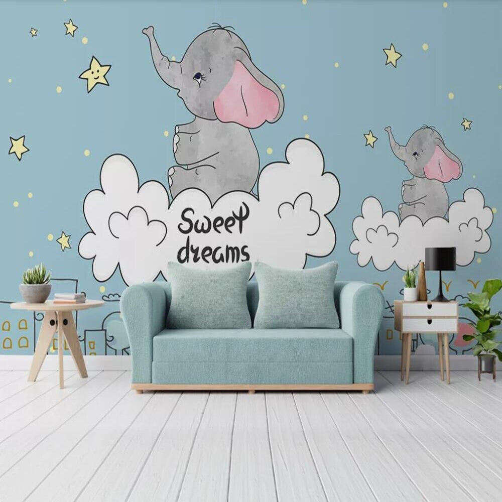 Sweet Dreams Baby Elephant Nursery Mural