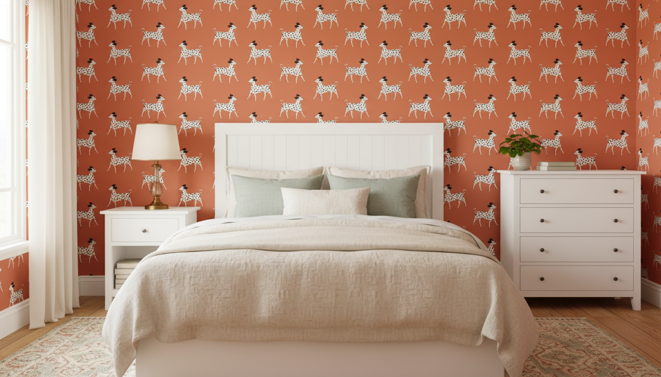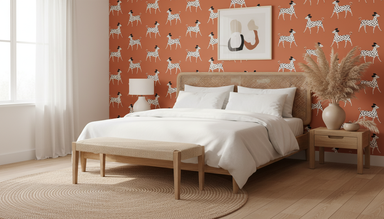 Transform your space with this charming terracotta orange dog wallpaper that brings warmth and personality to any room. Perfect for dog lovers and animal enthusiasts, the rich terracotta hue creates a cosy, inviting atmosphere while the playful canine design adds character and charm. Whether you're decorating a nursery, bedroom, or living area, this wallpaper strikes the ideal balance between fun and sophistication. Easy to apply and built to last, it's the pawfect way to showcase your love for our four legged friends whilst elevating your interior style.